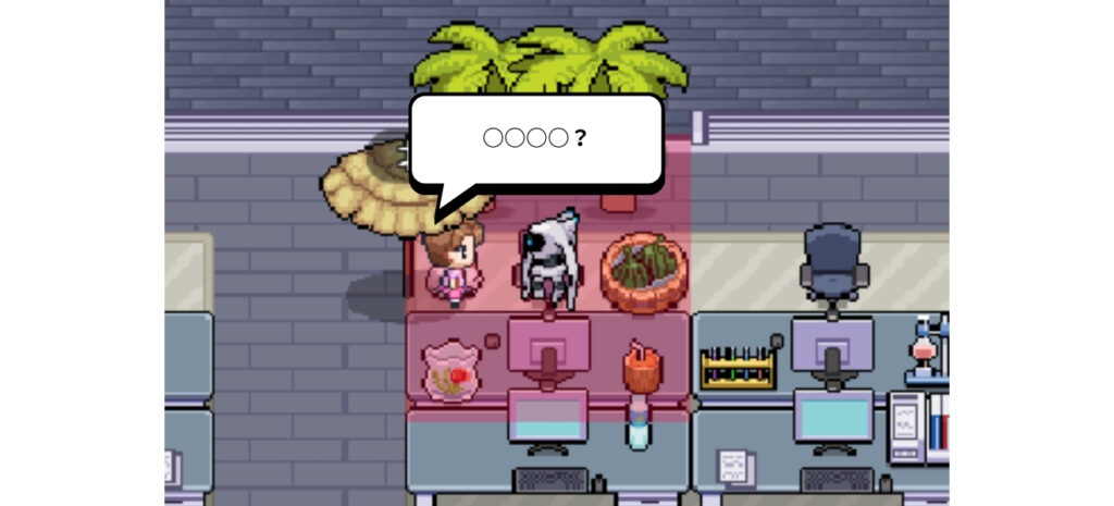 不明点が出てきた際は、バーチャルオフィス(仮想空間をオフィスに見立てて使うサービス)で上司に相談しながら作業を進めています。 そこでは、自分の分身であるアバターを操作し、メンバー同士が近づくと自然に会話が始まり、必要に応じて画面共有も可能です。